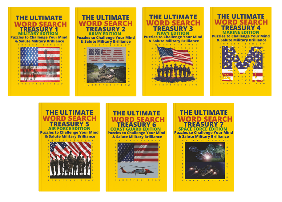 Challenge your mind and honor the brave with The Ultimate Word Search Treasury Series. Each edition celebrates the courage, discipline, and sacrifice of our heroes across every branch of service — from the Military Edition to the Army, Navy, Air Force, Marine Corps, Coast Guard, Space Force, and National Guard. With large-print, thoughtfully themed puzzles, this series offers moments of reflection, gratitude, and mental exercise for veterans, families, and anyone who honors those who serve. Collect them all and salute the heroes, one word at a time.